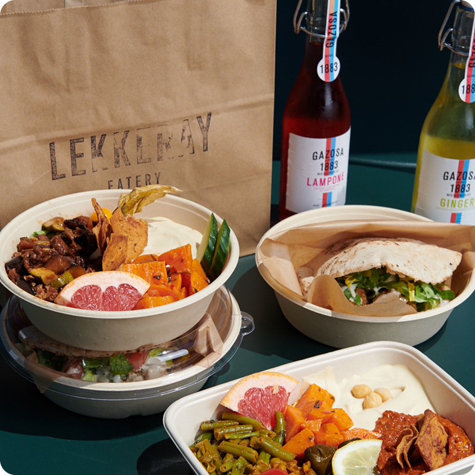 Deine Mahlzeiten kommen in umweltfreundlichen Verpackungen zu dir – entweder wiederverwendbar oder kompostierbar.